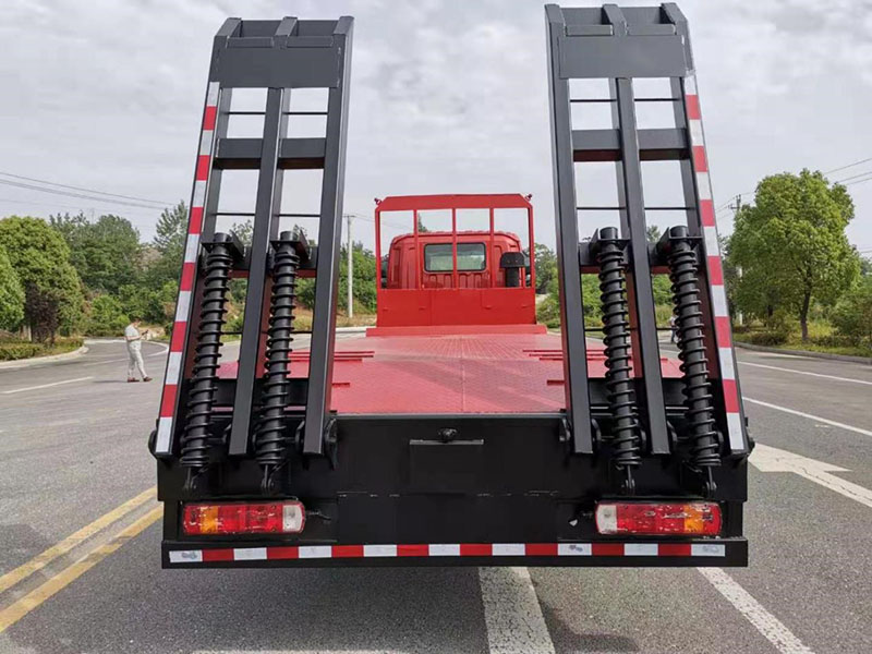 上裝配置橫梁方管、底板花紋板,平板展開可選裝液壓伸縮,爬梯采用雙彈簧加強型設計,三道筋+雙彈簧加固焊接技術,可選裝液壓爬梯或折疊加長型液壓爬梯,斜坡處帶后支腿